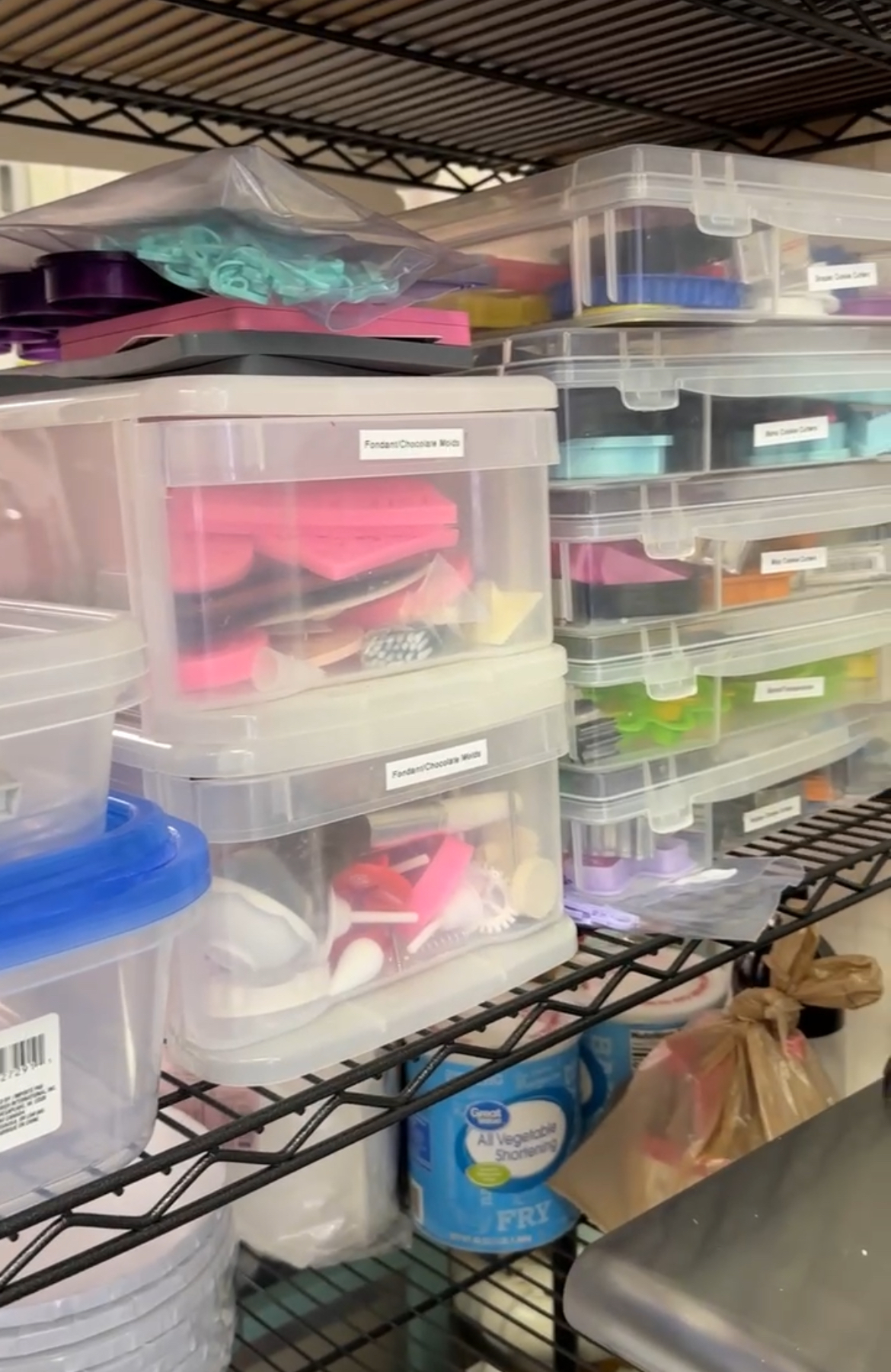 - Stackable Plastic Storage Bins: These are GREAT if you have limited space but love an organized kitchen or workspace! I love to use these to store cookie cutters and label each bin with the theme of the cookie cutters inside. (Ex: Christmas, Halloween, Sports, Princess, etc). These bins make it easy to find specific cookie cutters you’re looking for and keep track of what cutters or tools you already have!